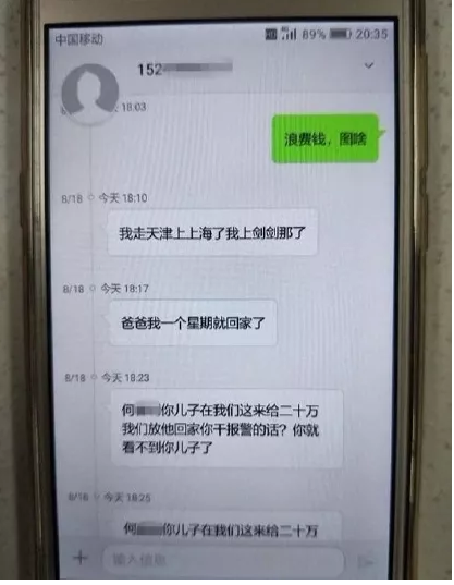 近日,何老伯报警称儿子被绑架,对方要20万赎金。
