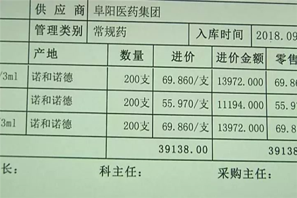 他一直使用的门冬胰岛素诺和锐30,在医药集团购买每支价格是55元,而在九院每支却是69.80元,相同的药品差价却将近15元。