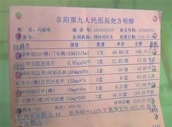 在青年路阜阳市第九医院,记者见到了马先生,他说,自己患有糖尿病,得长期注射胰岛素,虽然在慢性病定点医院看病开药,能报销部分的药费,但门诊的药价比非慢性病定点药店都要高。