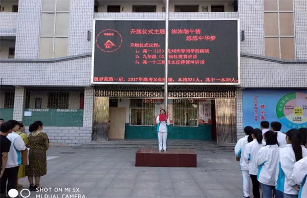 端午节和“中考”同步临近,6月11日早晨,阜阳四中在校园广场举行了以“迎中考”、“端午情”升旗仪式,阜阳四中校长刘杰及全体师生参加了升旗活动。
